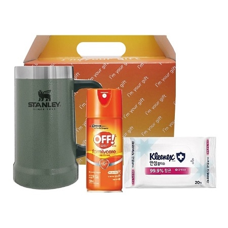 가족안심 3종세트 스탠리 텀블러 빅머그컵709ml+한국존슨 모기기피제+크리넥스 안심물티슈 홍보물품제작