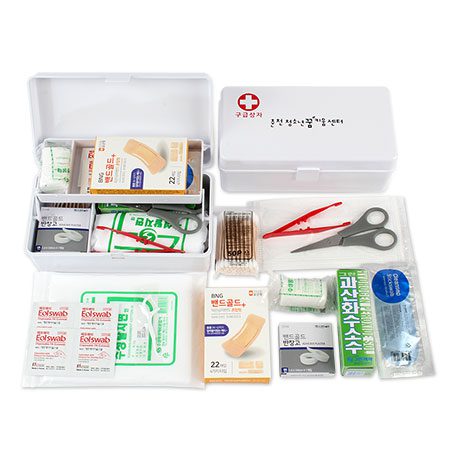 • 구성품: 소독용 거즈, 붕대, 가위, 면봉, 멸균거즈 등 다양한 응급처치 용품이 포함되어 있습니다.