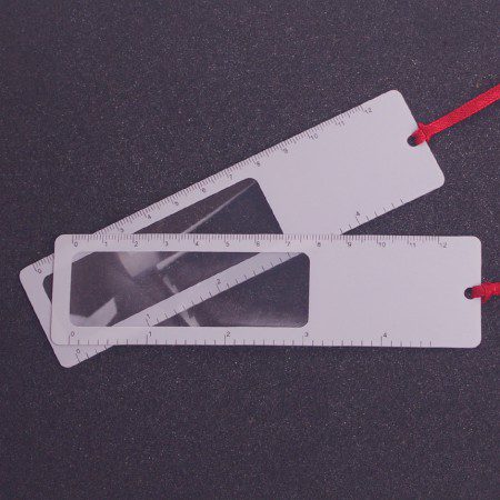 책갈피로도 활용 가능한 12cm 길이의 자와 돋보기 기능이 결합된 제품으로, 독서 중 페이지에 끼워 사용하기 좋습니다.