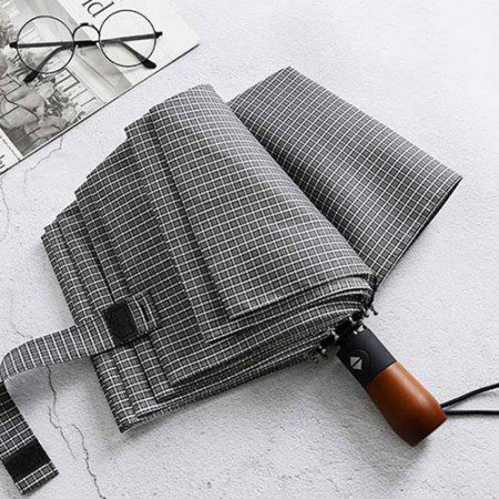 체크 패턴이 돋보이는 세련된 접이식 우산