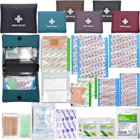 - 반창고, 소독 패드, 면봉, 지혈용 거즈 등 필수적인 응급처치 용품 포함.