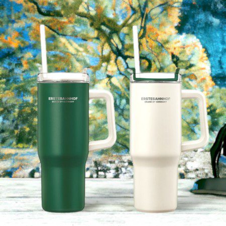 이 텀블러는 손잡이가 있어 휴대가 편리하며, 이동 중에도 편리하게 사용할 수 있습니다. 특히 차량 내에서도 쉽게 보관하고 꺼내 쓸 수 있어 텀블러 제작 시 실용성을 강조할 수 있습니다.
