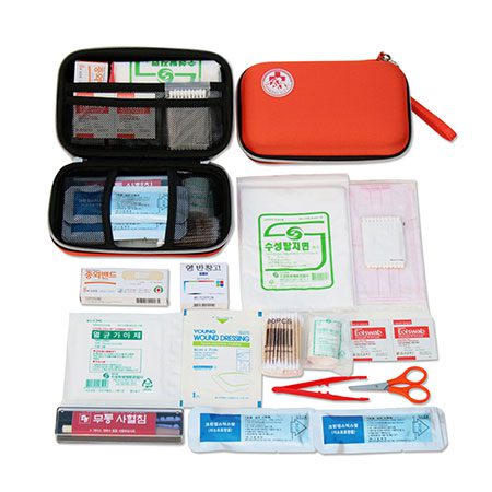 - 알코올 스왑, 드레싱 밴드, 소독 거즈 등 15종의 응급용품 포함.