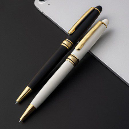 - 볼펜판촉물로 활용하기에 적합한 블랙과 화이트 컬러의 절제된 고급스러움과 금장 포인트가 특징입니다.